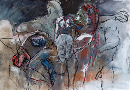 Anne Eßlinger arbeitet in den Bereichen Malerei, Grafik, Plastik und Installation, wobei sie ihre Themen aus der kritischen Betrachtung des gesellschaftlichen Umfeldes bezieht. Welchen Einfluss haben die umgebenden Verhältnisse auf das Individuum?