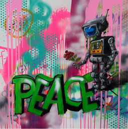 Seine Liebe gilt dem experimentellen Expressionismus. Acryl mit Pinseltechniken, Spachtel und anderen Arbeits-Materialien.