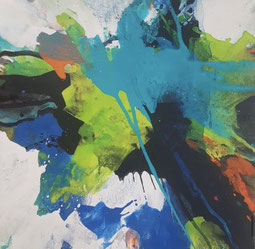 entwickeln sich durch expressiven Farbauftrag, der spontan und ohne Planung entsteht, geboren aus Gefühl. Ruhige Flächen stehen im Kontrast zur Linie, reine Farbe zu Mischtönen, diese lassen die